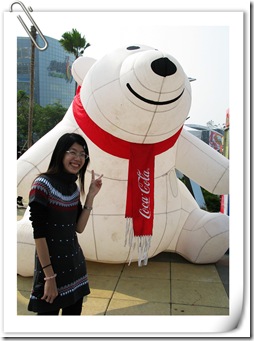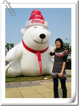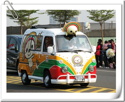 開始前來個彩排吧!超可愛的車車。還沒開始前,先跟旁邊的可樂熊拍拍照吧!