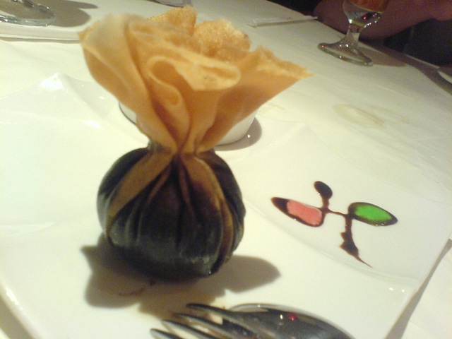 我點的是巧克力袋冰淇淋,大口的把巧克力袋咬破讓巧克力流出來,很濃郁的巧克力味且是熱的唷!把巧克力倒在冰淇淋上吃也不錯吃,只是我不知第二張圖那是要做什麼用的,好像是要沾的又好像是裝飾用的....